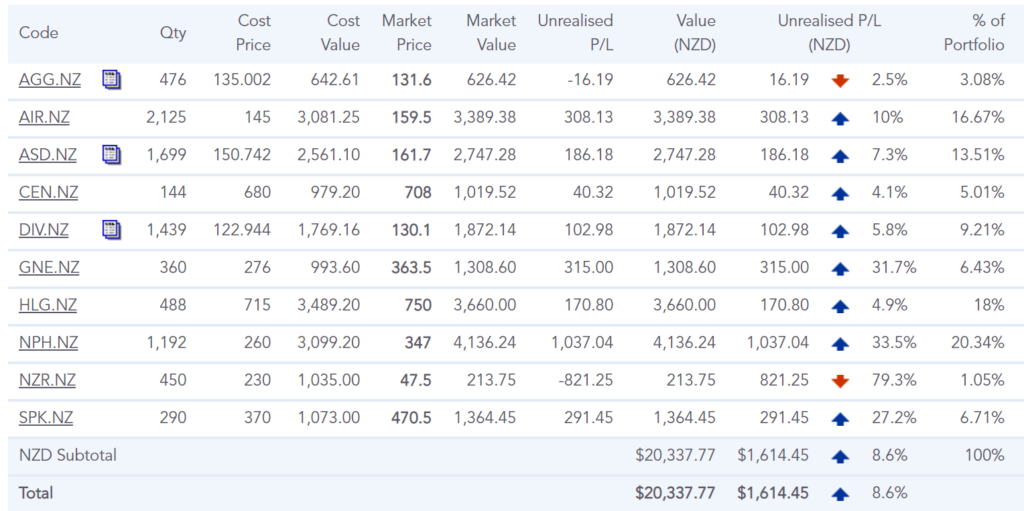As you can see, I now have shares in 2 energy companies – Genesis and Contact. In a few months, I’ll pick up Meridian and Mercury. In-between other shares of course.