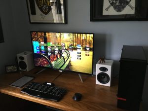 Ah. Now my favorite part. The speakers. I am super happy with my choice! Like, everyone should get them. For your PC, for your TV, for your Xbox. These should be everywhere. I have turned them up and been amazed at their quality. And as someone who pretends to be an audiophile (while listening almost exclusively to metal), I have not found fault at all with them. What are they? I hear you cry. Readers, I present to you the Audio Engine A5+. And yes, I have the white ones. Because they are beautiful. Thats why!